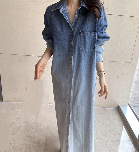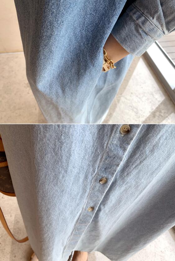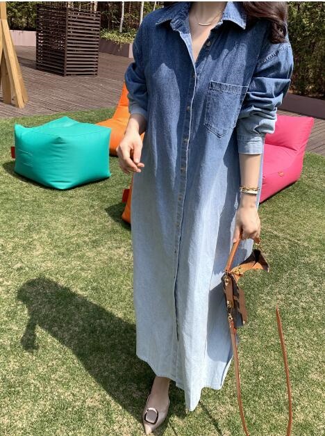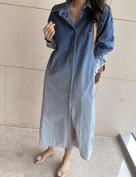開襟デザインで抜け感のあるスタイリングが楽しめるロングワンピース。
