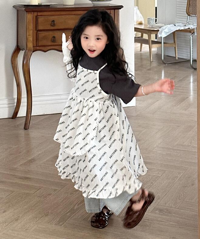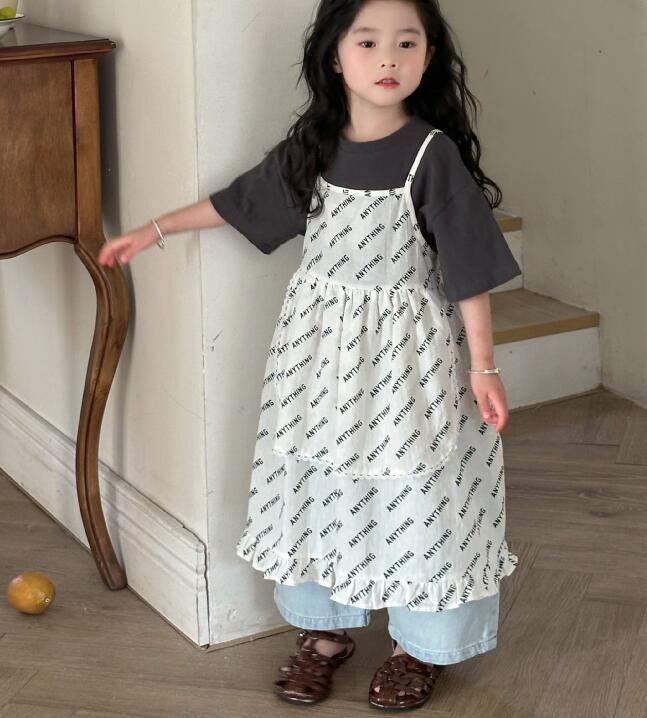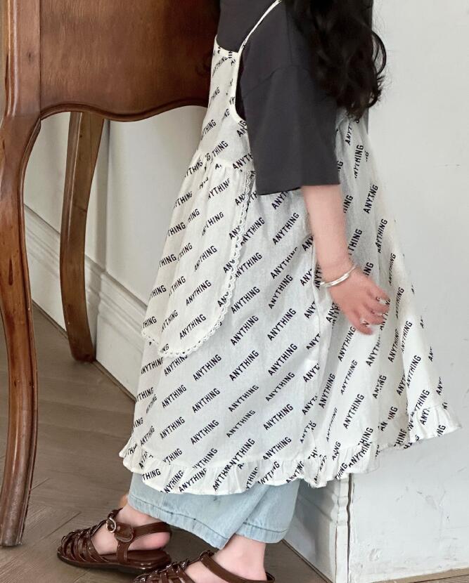 可愛い文字柄が印象的なキッズ用吊りスカートです。