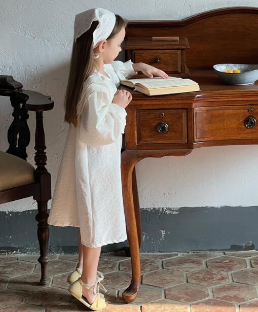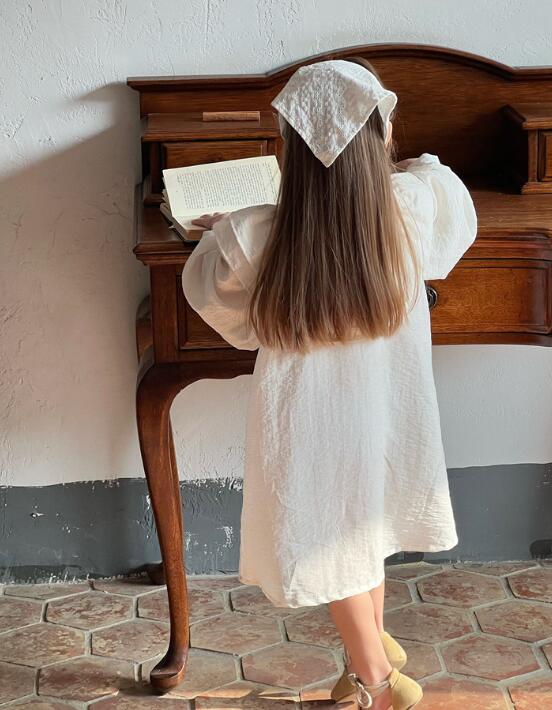 上品な白色の刺繍が美しいキッズ用ロングワンピースです。