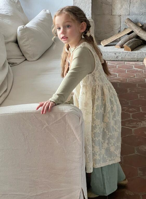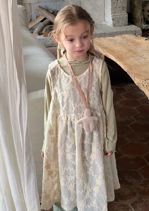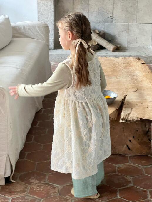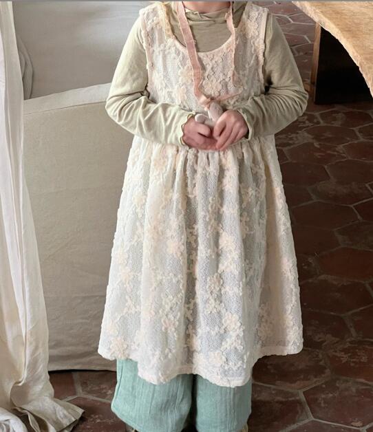 上品なレース刺繍が美しいキッズ用ロングワンピースです。