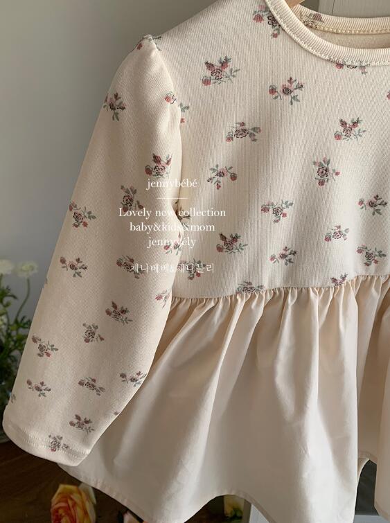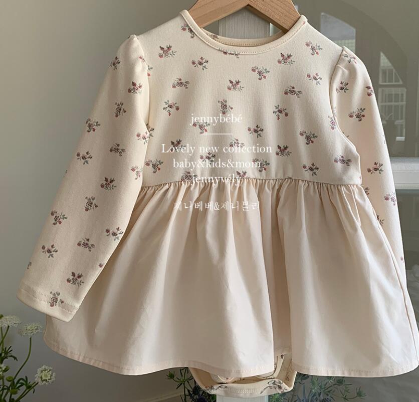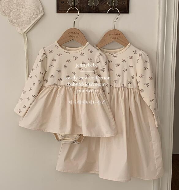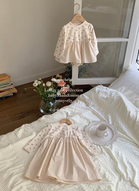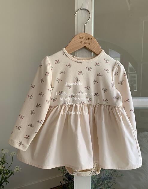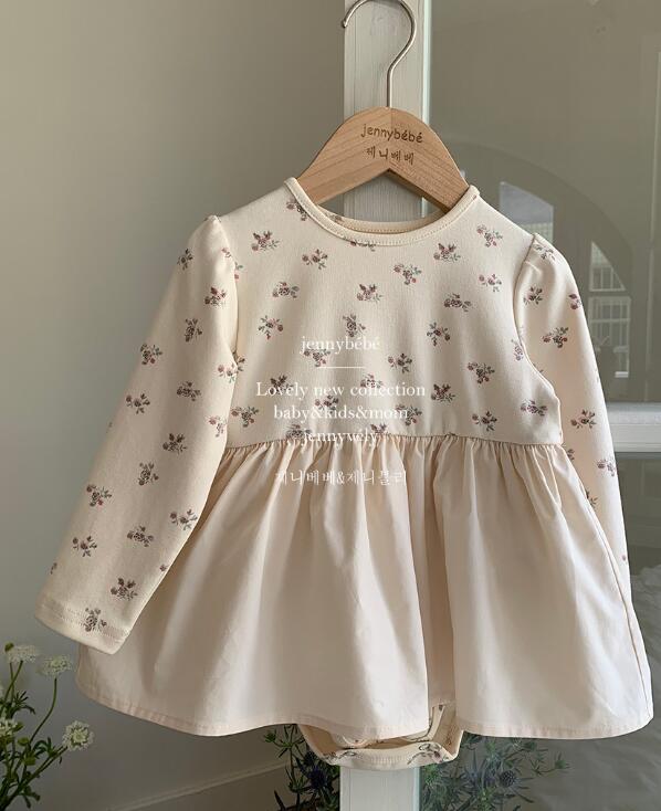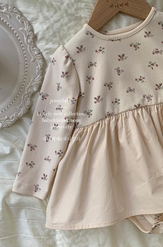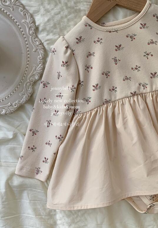 可愛らしい小花柄が全体に散りばめられた長袖ロンパースワンピースです。