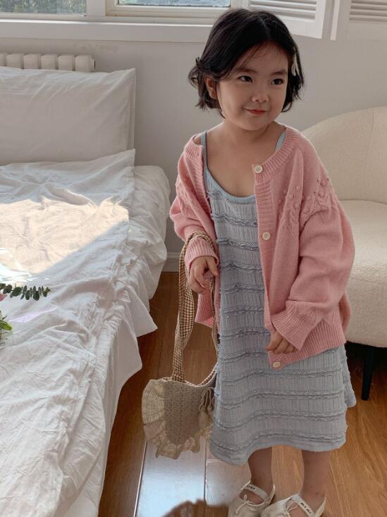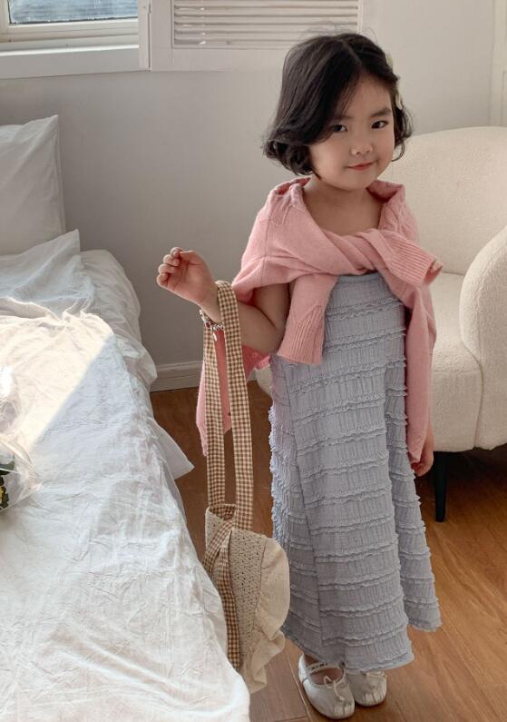上品なニット編みが可愛いキッズ用ロングワンピースです。