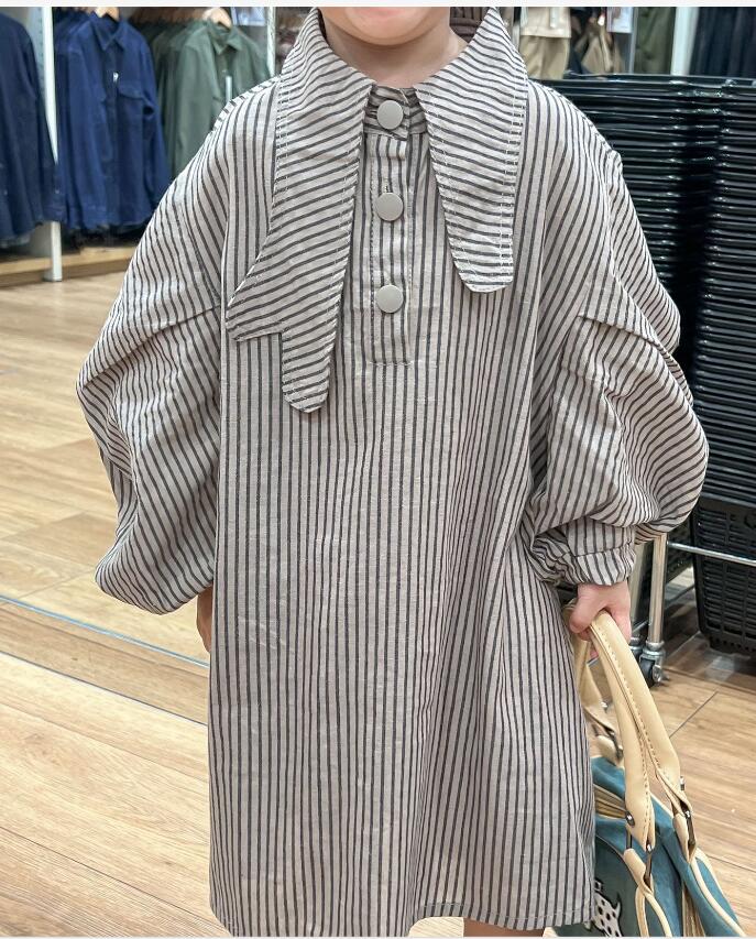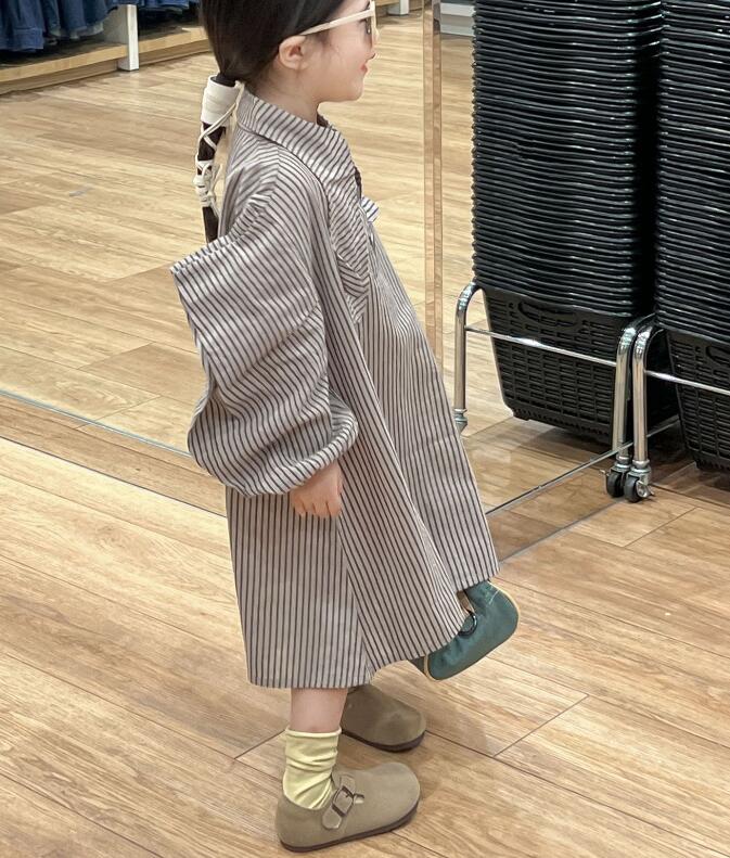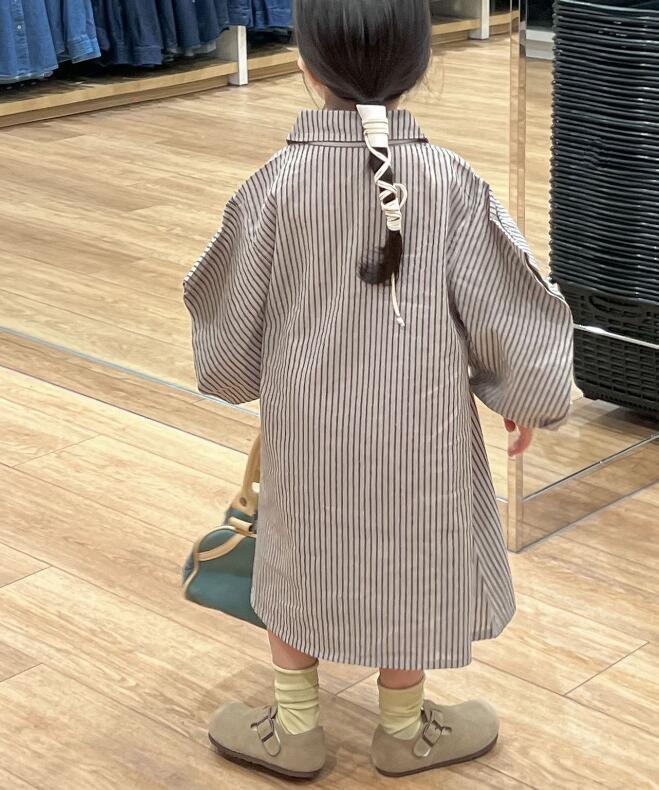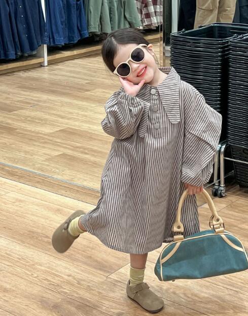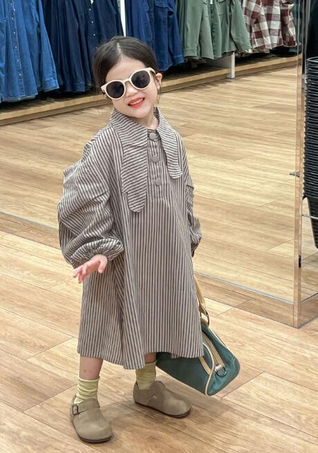おしゃれな縦縞柄が可愛いキッズ用ロングワンピースです。