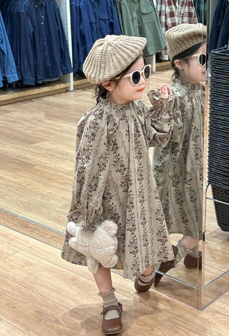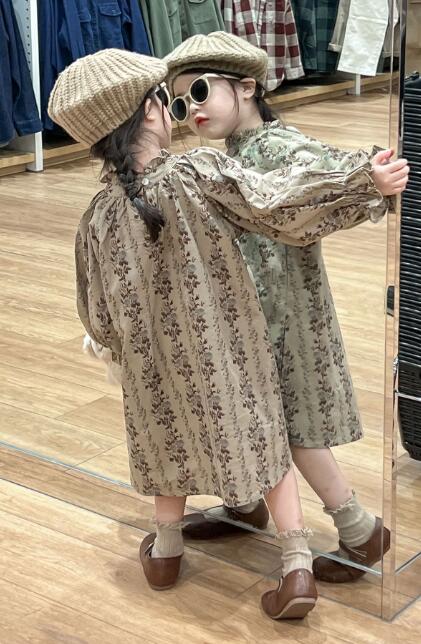 可愛い花柄が印象的なキッズ用ロングワンピースです。