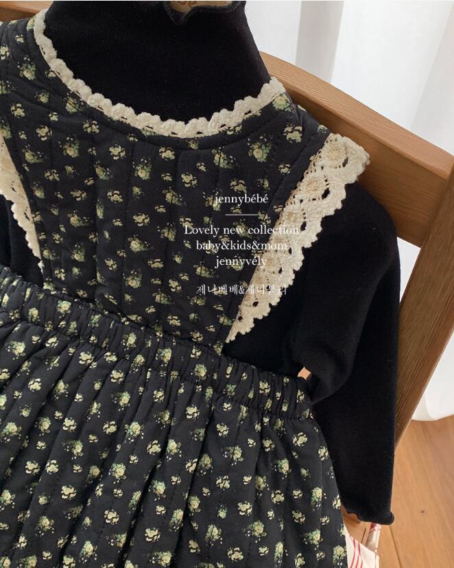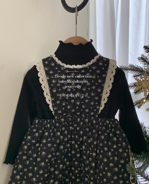 黒地に白い水玉模様と襟元の白いレース装飾が上品で愛らしいデザイン。
