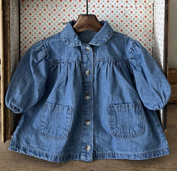 キッズ向けの可愛いデニム素材のロングワンピースです。