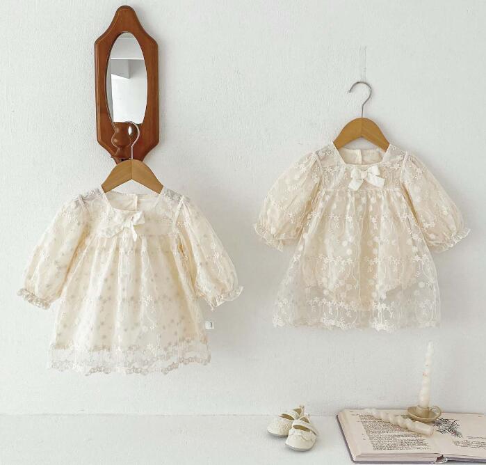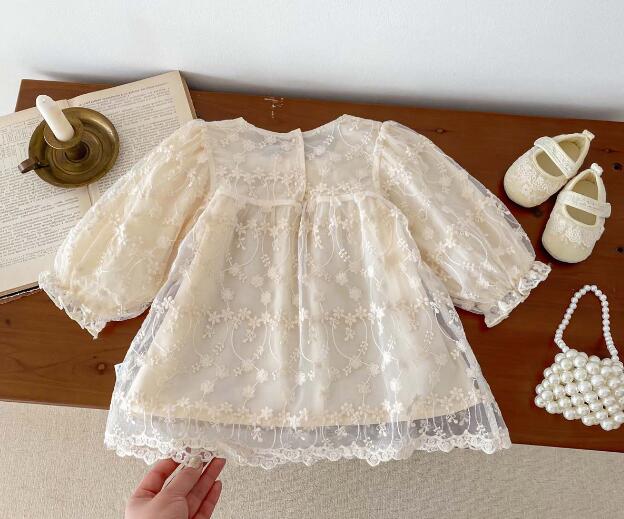上品なレース刺繍が美しいキッズ向けロングワンピースです。
