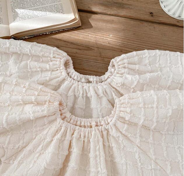 柔らかな素材で作られたロングワンピース風デザインが、お子様を可愛らしく演出します。