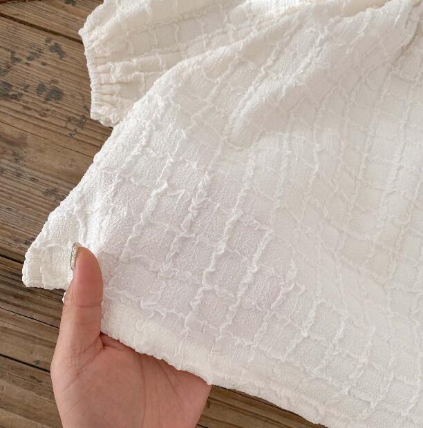 上品な白色刺繍が美しいキッズ向けワンピースセットです。