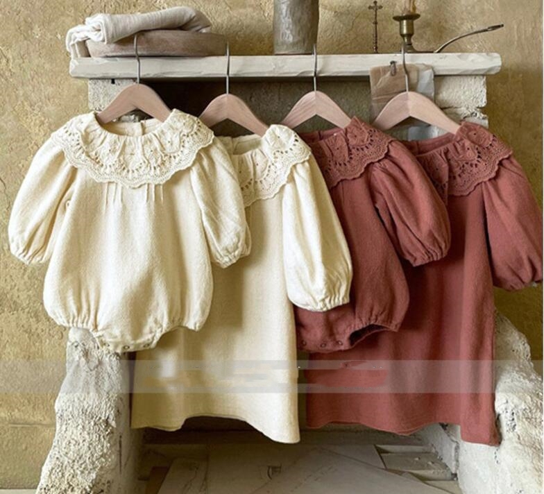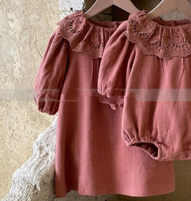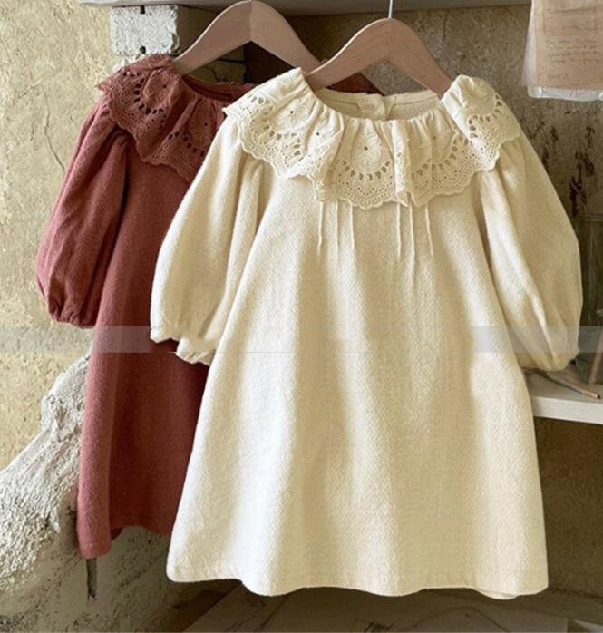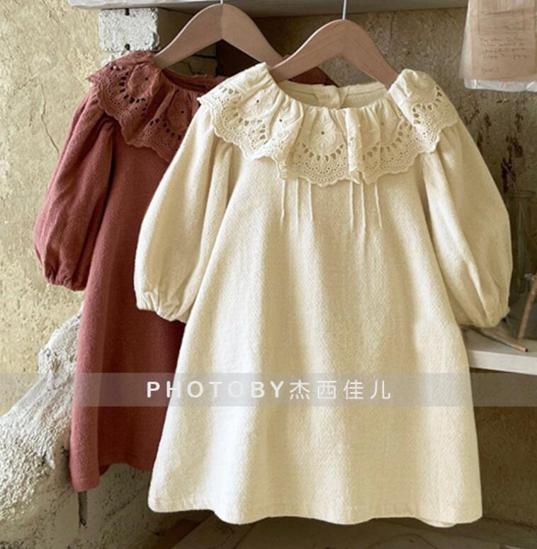 上品なレース襟が可愛いキッズ用ロングワンピースです。
