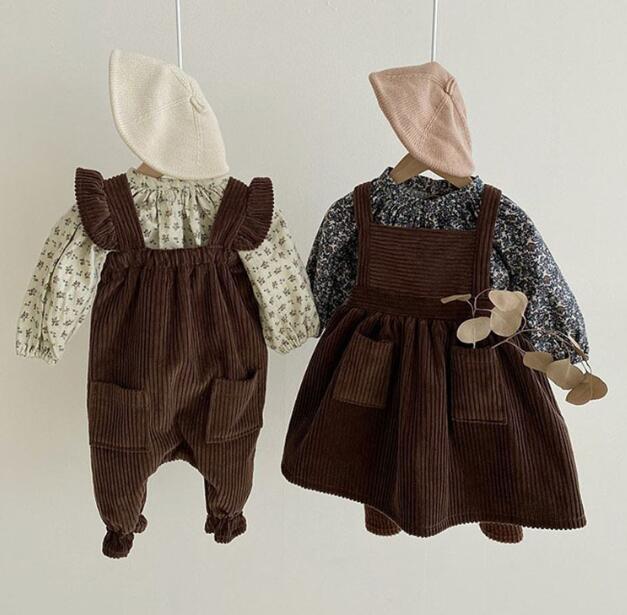 キッズ向けの可愛いコーデュロイ素材ジャンパースカートです。