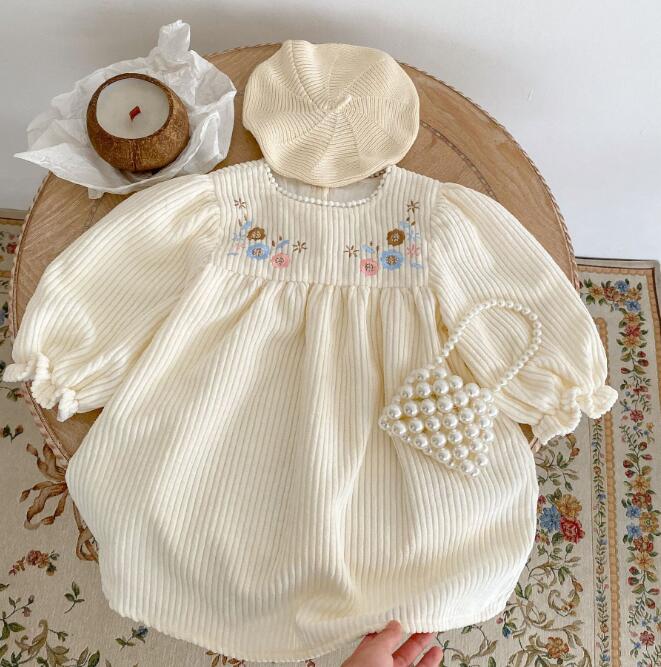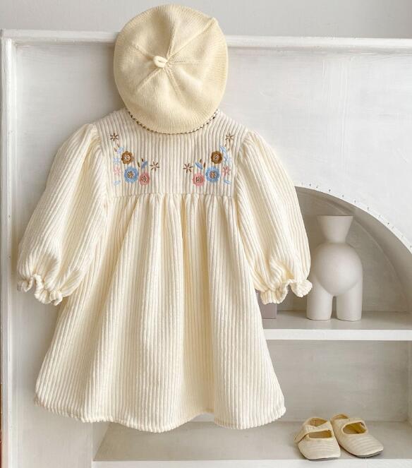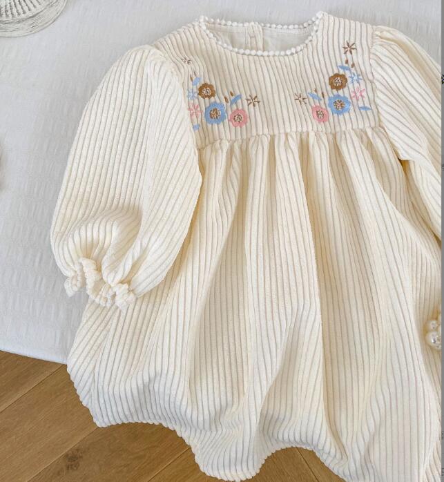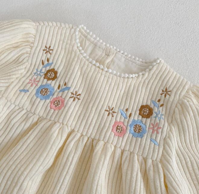 キッズ向けの可愛らしい花刺繍が施されたロングワンピースです。