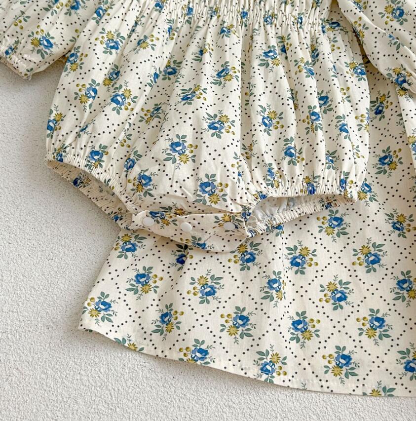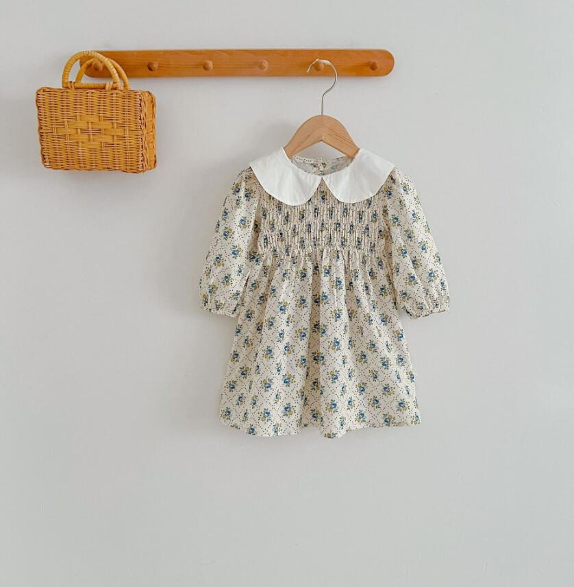 キッズ向けの可愛い花柄長袖ワンピースです。