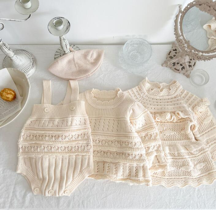 帽子、ロンパース、ロングワンピースがセットになっており、単品でもコーディネートでも楽しめます。
