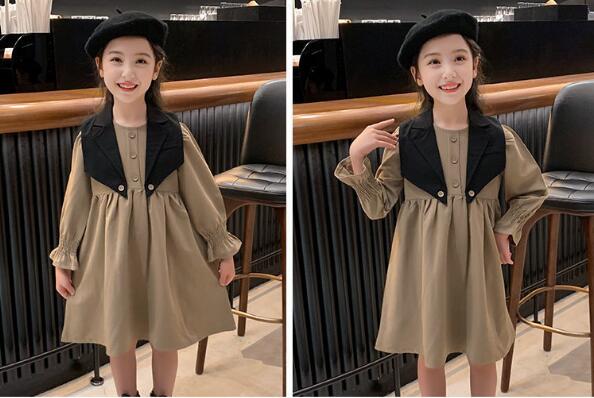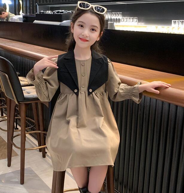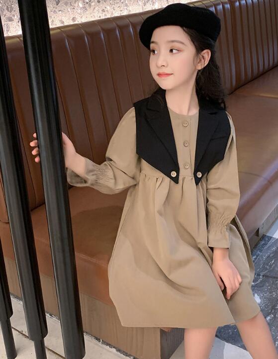 ベージュとネイビーの配色がおしゃれなベスト風デザインで、秋のお出かけにぴったり。