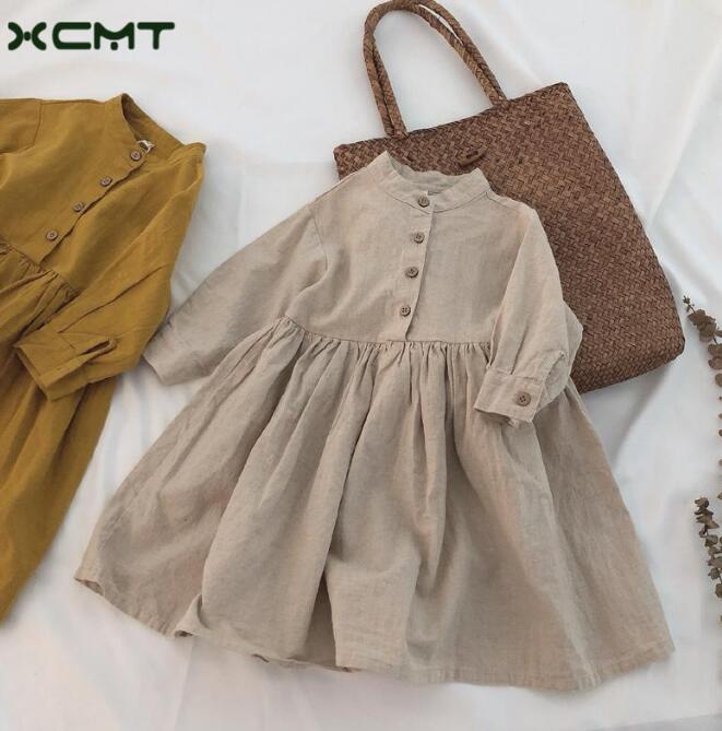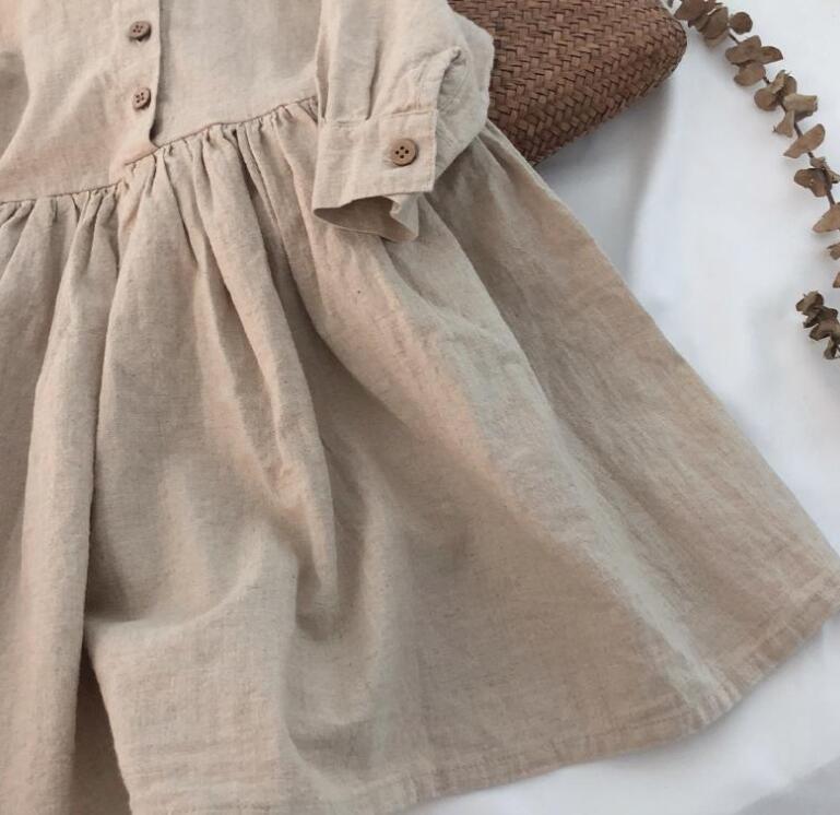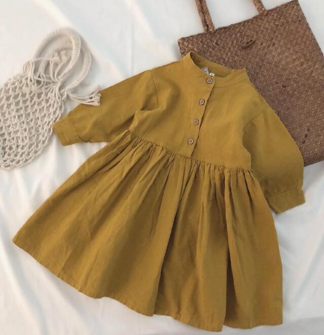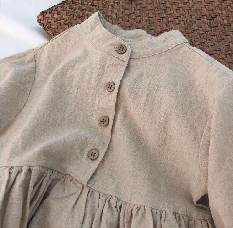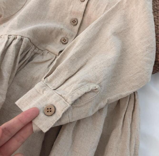 前開きボタンデザインで着脱も簡単、ふんわり広がるスカート部分が可愛らしい一着です。