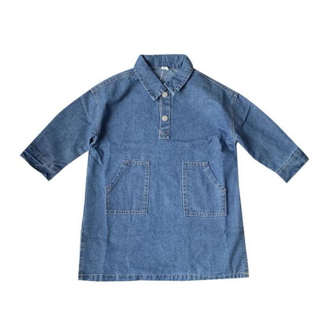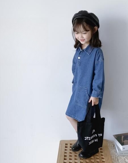 おしゃれなキッズ向けデニム素材のロングワンピースです。