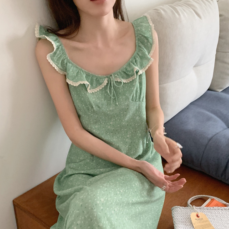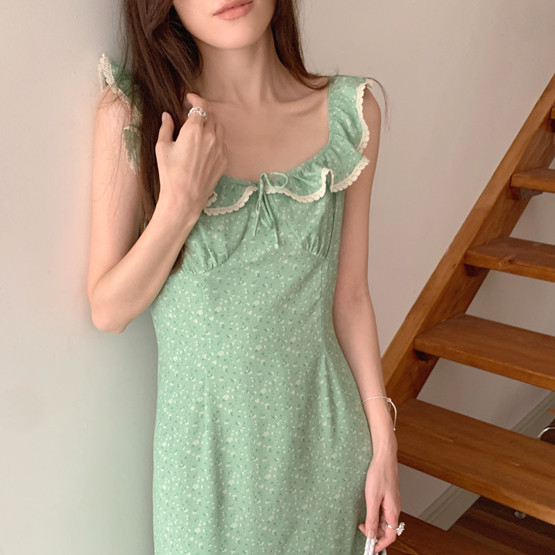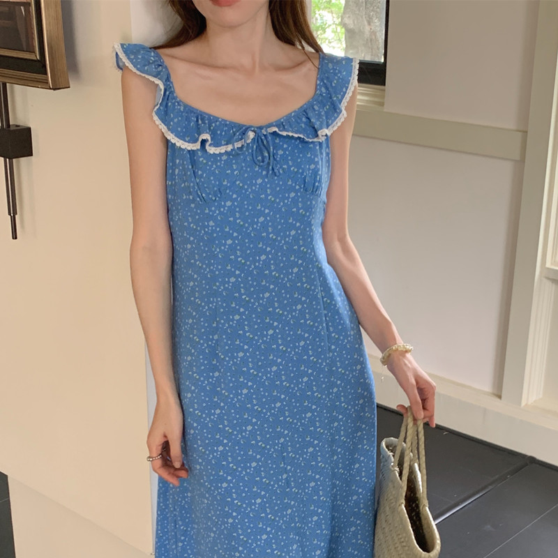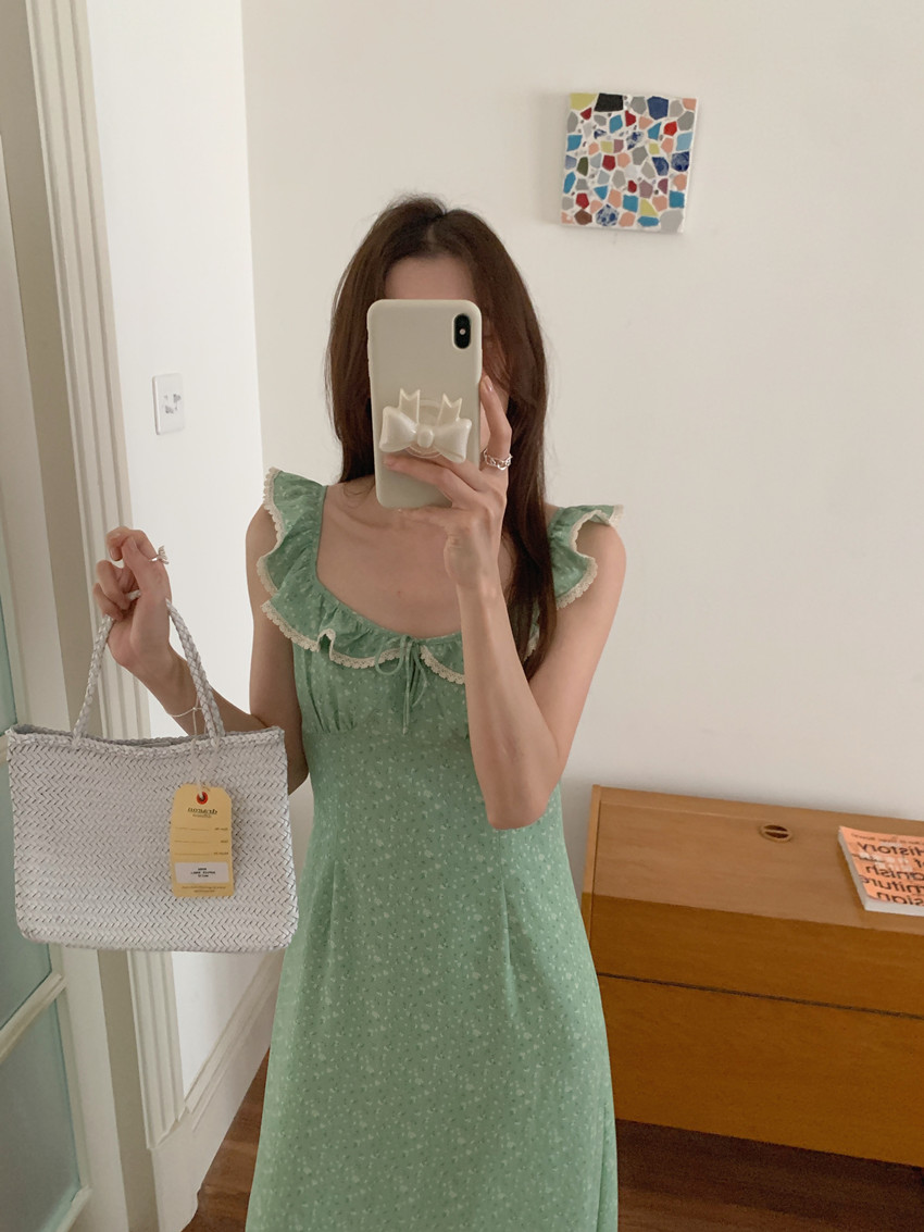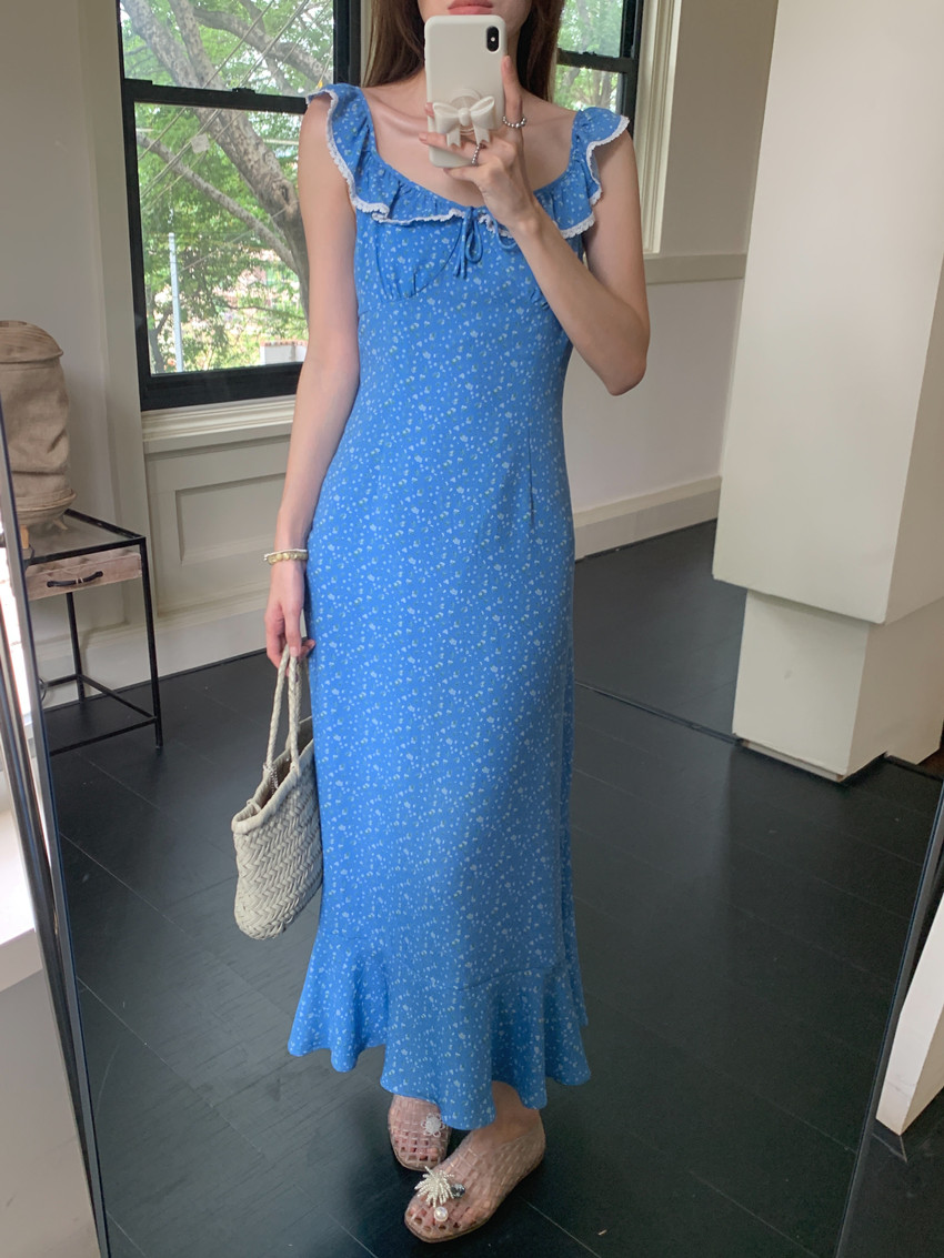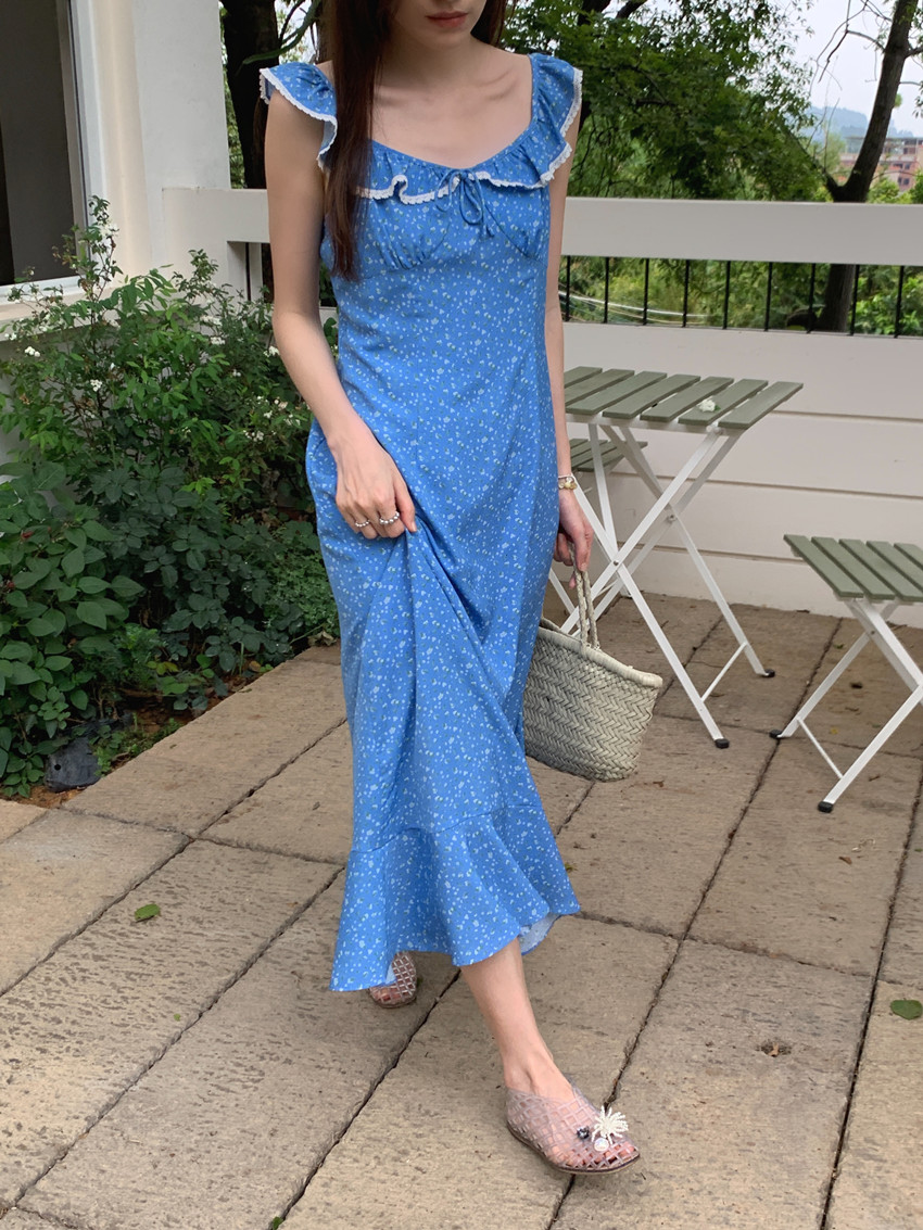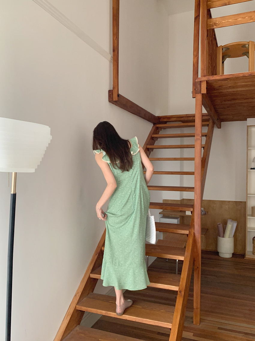 今季注目の韓国風デザインが魅力的なノースリーブロングワンピース。