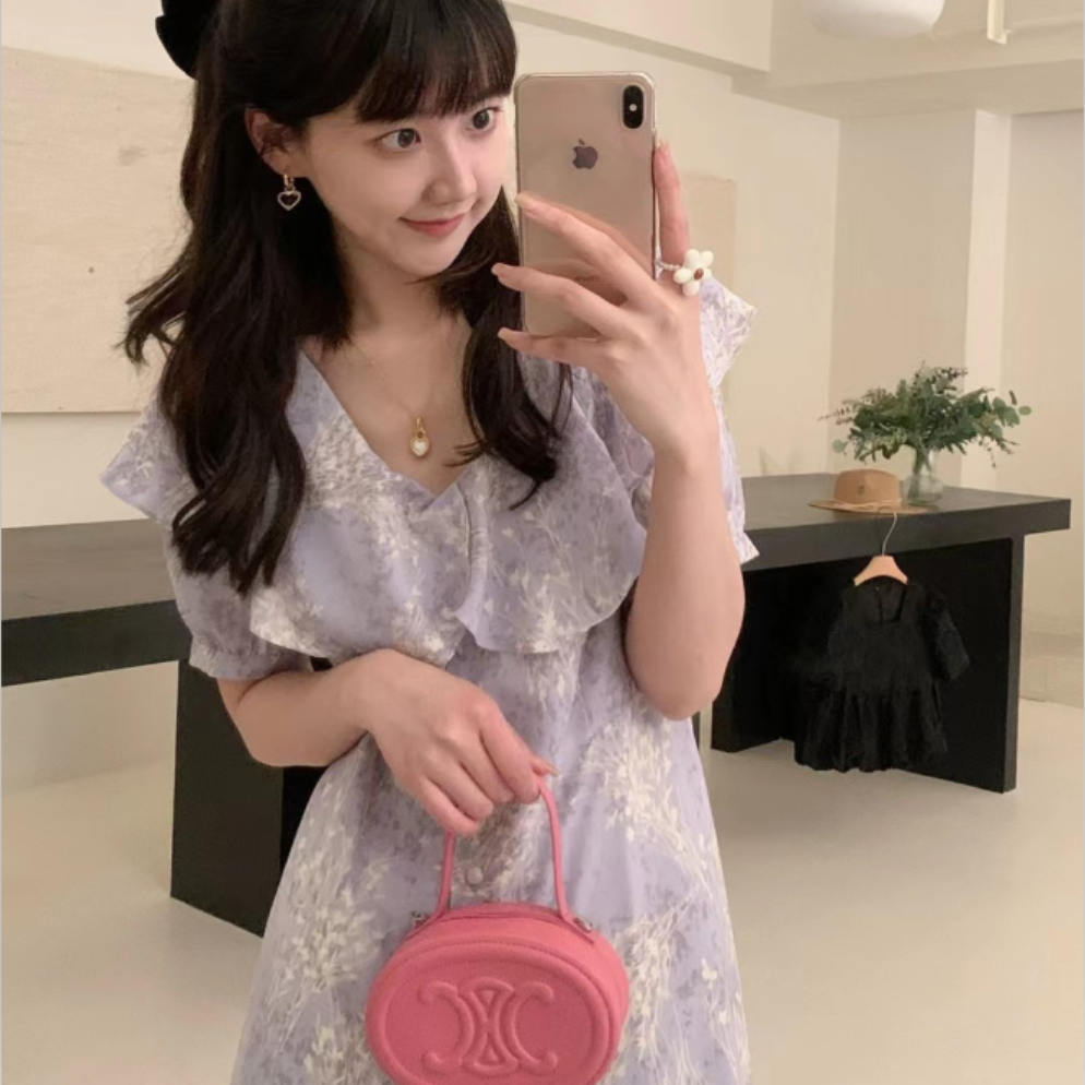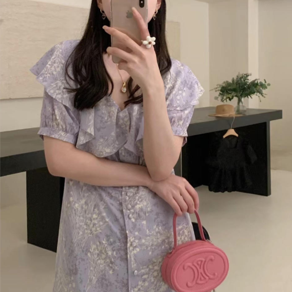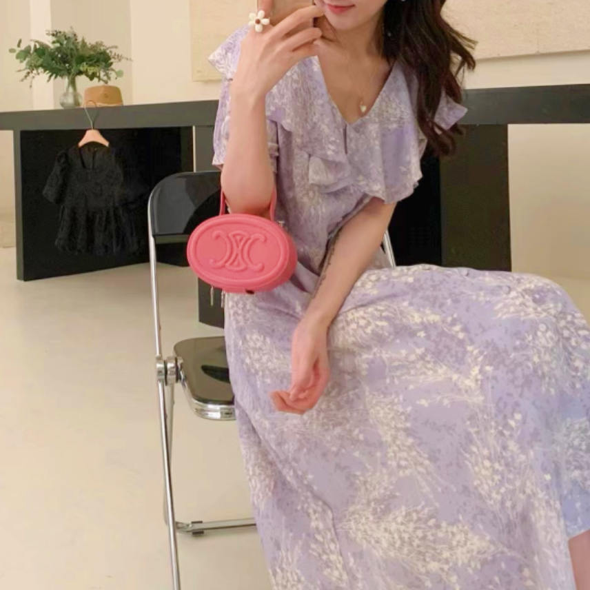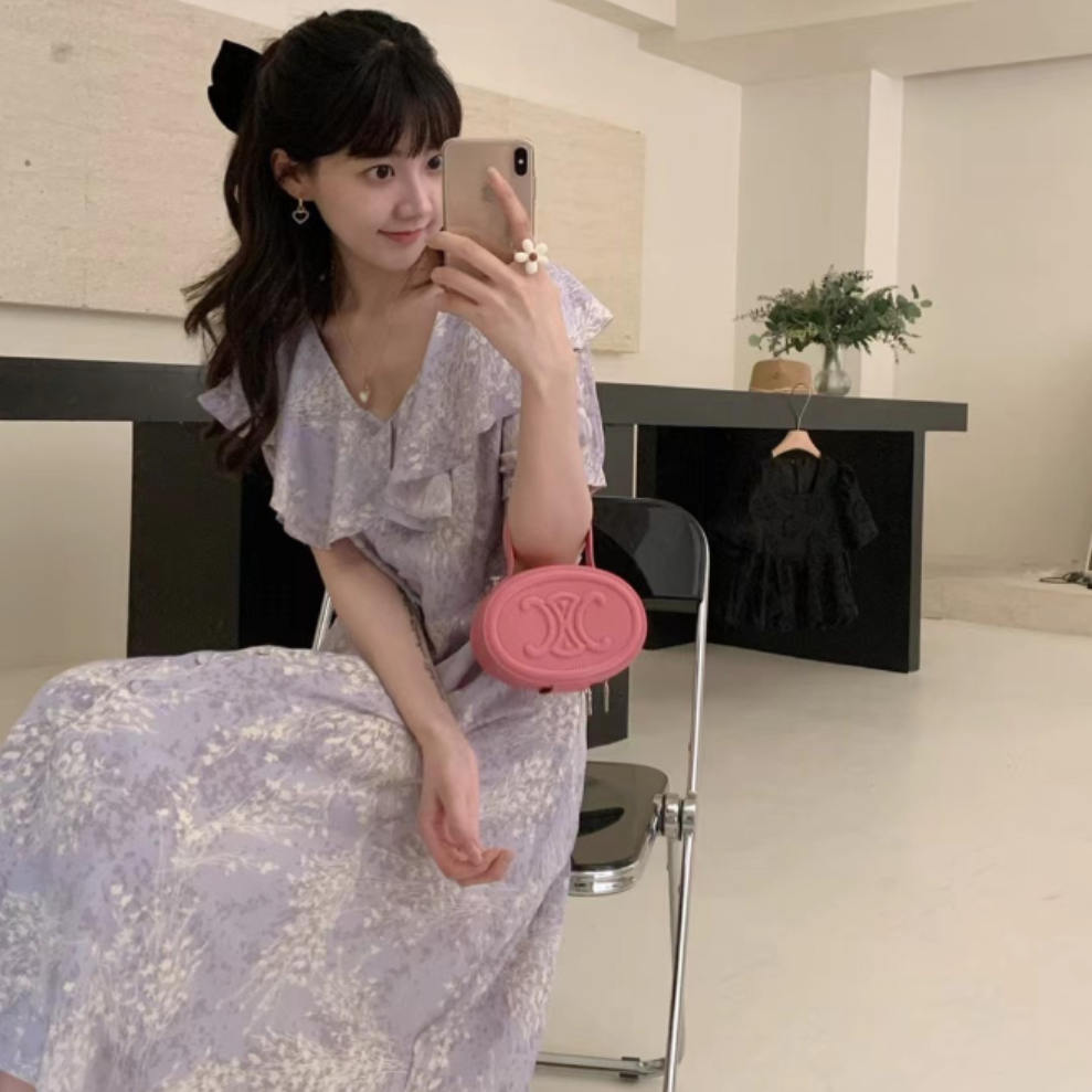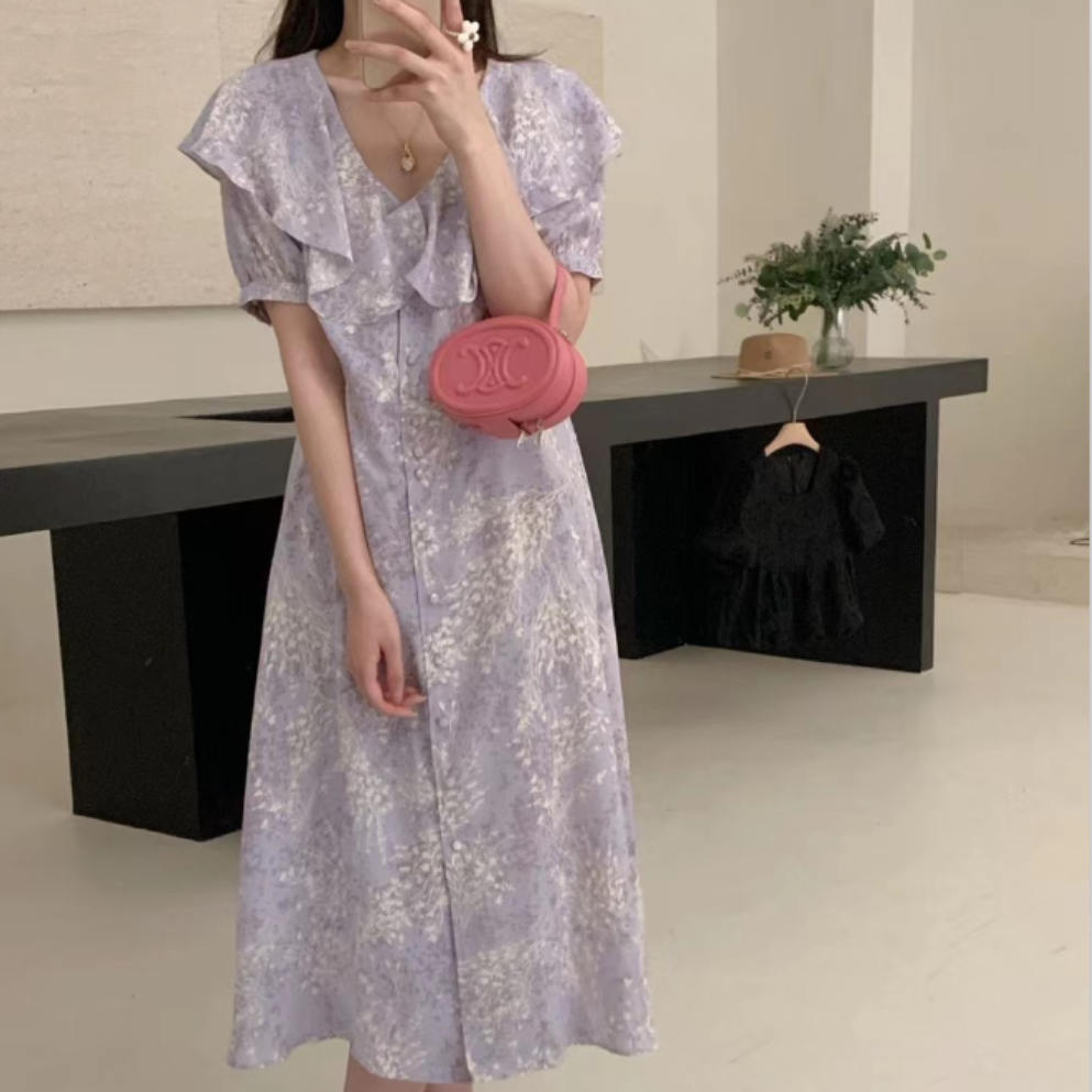 上品な花柄が美しい韓国風デザインのロングワンピース。
