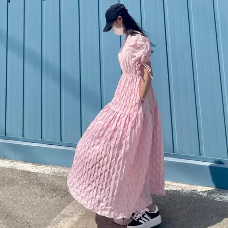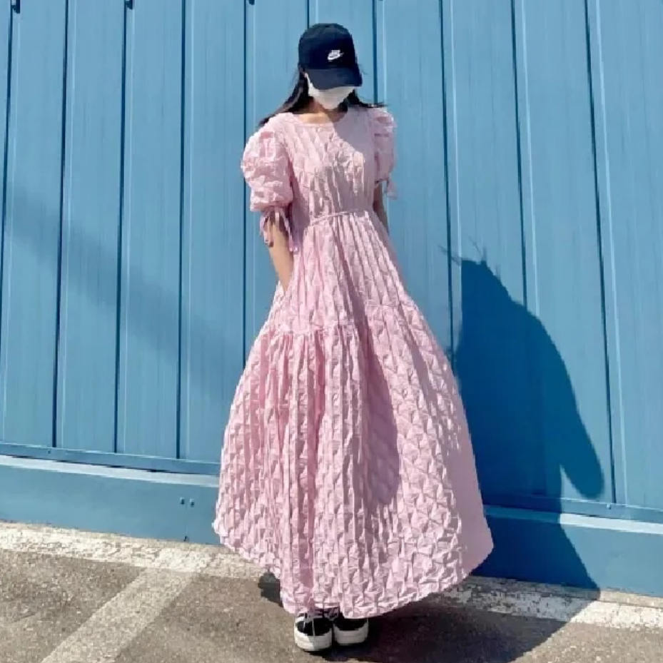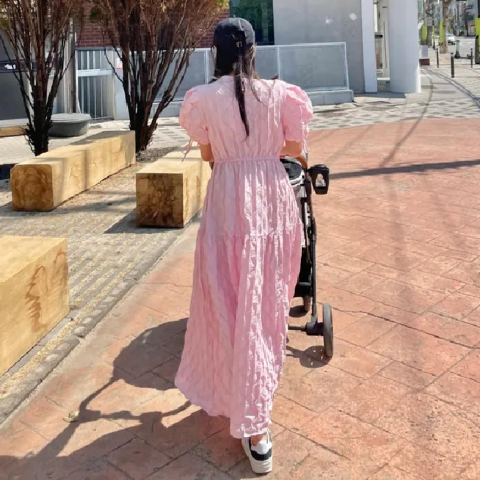 今季注目の韓国風デザインが魅力的なロングワンピース。